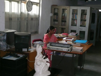The library covers a total area of 242.43 sq mts. It has three sections. The central section covering 98.23 sq mts consists of the librarian’s counter as well as the issuing counter. The left wing, covering an area of 72.10 sq mts is used as the Students’ Reading Room. The right wing of the same size, is meant for the reading activities of teachers. There are four cubicles with the sitting capacity of eight persons. Moreover, a big cupboard has been installed in this section, wherein are placed most of the audio-visual facilities of the college. Facilities have been provided to arrange an audio-visual show for fifty students at a time, in the library itself.